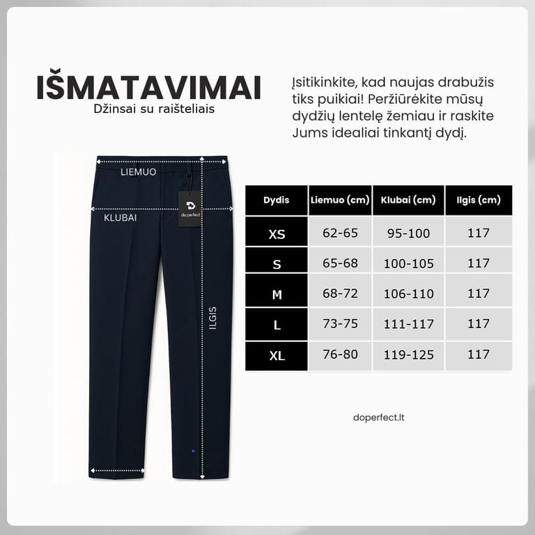 Minkštas džinsas : 70% medvilnės 25% polisterio 3% viskozės 2% elastano